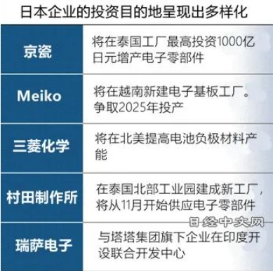 2022年日本制造业对华直接投资减少5.7%,对北美投资则比上年增加28.7%,对印度投资也增至两倍。但分散工厂的日本企业大半仍在中国继续开展业务,也保持一定程度的投资,背景是中国的投资效率高……